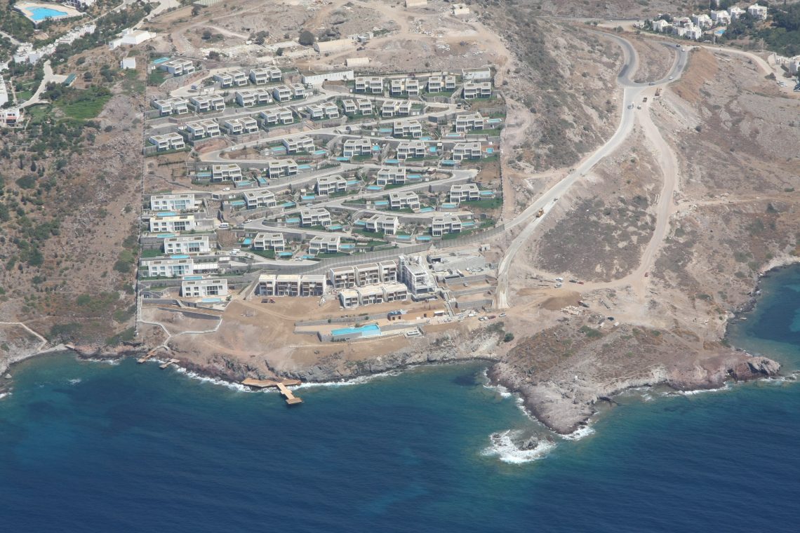Yeşil Vadi’nin Tefken Yalıkavak Evleri’ndeki peyzajı, denizden yaklaşık 70-75 metre yukarılara kadar dik bir şekilde çıkan kayalıkların üzerinde kurulmuş. Yollar, evler ve bahçeler tamamen kayaların içine oturtulmuş. Çok farklı bir peyzaj mimarlığı deneyimi…Halbuki bu proje dergimizde daha önce yayınlanmıştı.